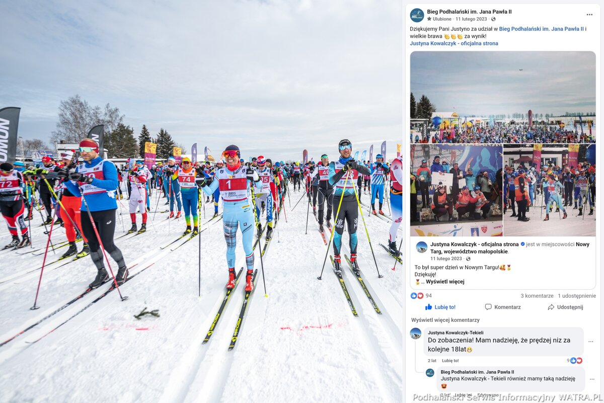W 2023 roku, po 18 latach, na nowotarskie lotnisko wróciła królowa nart biegowych - Justyna Kowalczyk-Tekieli i we wspaniałym stylu wygrała bieg na dystansie 30 km. W komentarzu po zawodach obiecała, że kolejny raz nie będziemy musieli tak długo czekać na jej ponowny start w naszym biegu. Jak obiecała, tak zrobiła! Justyna Kowalczyk-Tekieli wystartuje w XIII Biegu Podhalańskim! Nie będzie trzeba czekać kolejnych 18 lat, żeby móc ścigać się na nowotarskim lotnisku z pięciokrotną medalistką olimpijską, ośmiokrotną medalistką mistrzostw świata i czterokrotną triumfatorką Pucharu Świata! Można to zrobić już w najbliższą sobotę 17.01.2026! Pamiętajcie jednak, że Justyna cały czas jest w świetnej formie i wygrać z nią nie będzie łatwo!