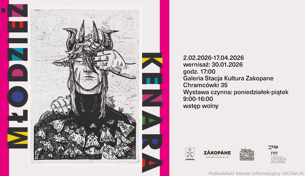 „Młodzież Kenara” to nowy projekt Stacji Kultura Zakopane prezentujący twórczość uczniów zakopiańskiego Państwowego Liceum Sztuk Plastycznych im. Antoniego Kenara. Ekspozycja ukaże różnorodność zainteresowań, wrażliwości i talentów młodych artystów, którzy czerpiąc z bogatego dziedzictwa szkoły poszukują własnych środków wyrazu. Młodzież Kenara. Wernisaż: 30.01.202, godzina: 17:00. Galeria Stacja Kultura Zakopane - Chramcówki 35.